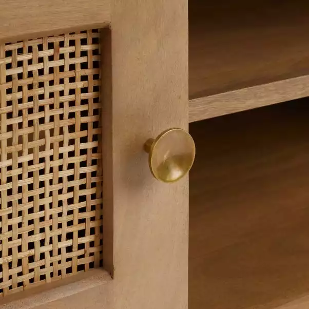 Both stylish and practical, the Indi Wide TV Stand features 6 fixed shelves, offering plenty of storage space for any media units and consoles. The Rattan door fronts not only lend this piece it’s stunning global style, but also allow remotes to be used with the doors closed. Crafted from a sturdy, solid mango wood, this piece is built to last.