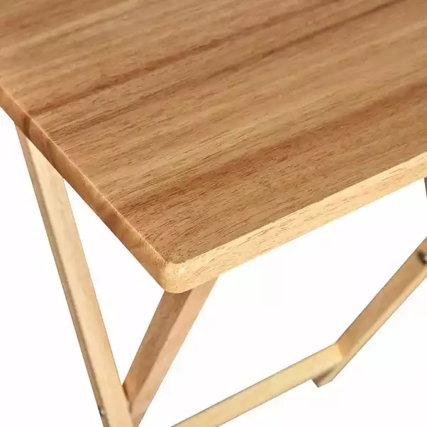 Crafted from durable rubberwood, this simple TV table features a light wood finish and is foldable for easy and quick use.