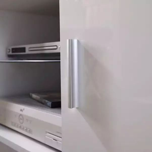 The Lima High Gloss TV Stand features two cupboards with shelves which are ideal for storing DVDs or console games. It also features an open shelf in the middle made from tempered glass that is perfect for holding your AV equipment.