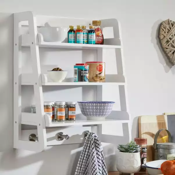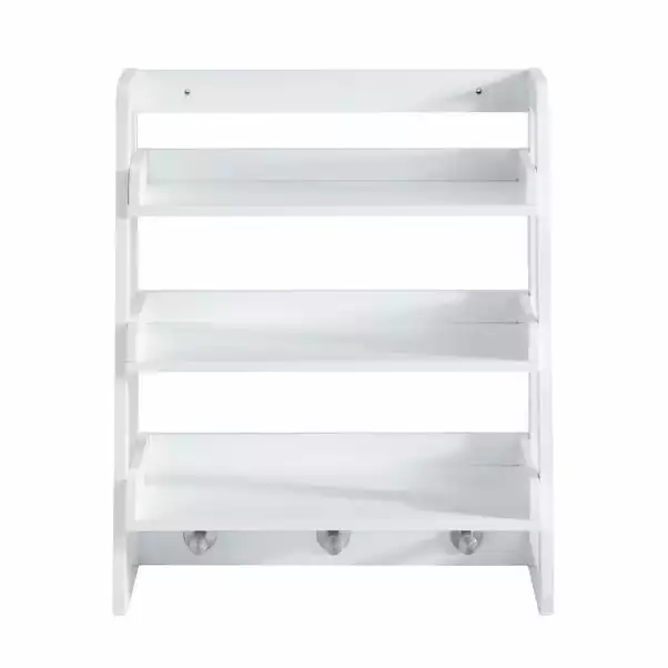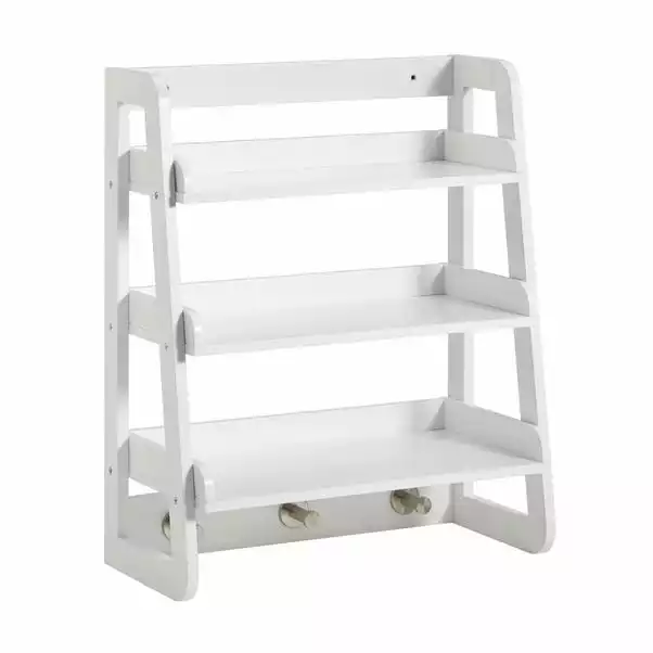 Boasting a clean, crisp painted finish, this shelving unit is perfect for storing and showcasing all your bathroom essentials. With a timeless design, that would compliment any bathroom interior, you can style these shelves however you like. With stylish chrome hooks and three shelves in a ladder formation, this shelving unit provides you with ample storage space. This unit is easy to assemble and is also available in grey.