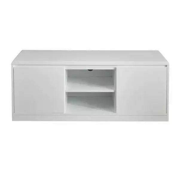 The Knox TV Stand is the perfect choice for smaller spaces or apartments due to its compact size. The Knox TV stand is designed with a minimalist, modern feel and offers a good amount of storage with a shelving unit and cupboards to store away consoles, games, and more.