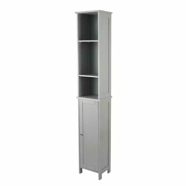 With a contemporary grey finish, this tall cabinet features 6 shelves; three open and three behind a hinged cupboard door. Ideal for storing and displaying your bathroom accessories and essentials, this cabinet brings you a stylish storage solution that takes up little floor space due to its tall, slim design.